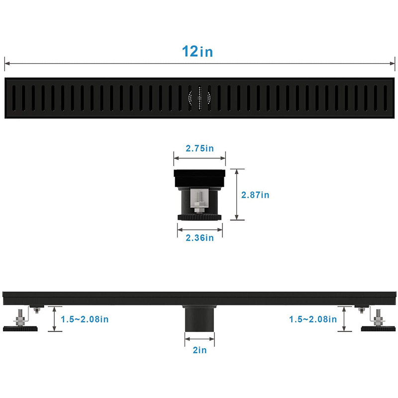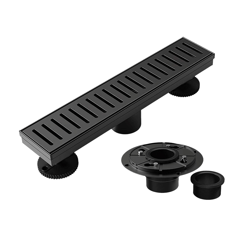 Beidh grá agat ar an draein cithfholcadh seo. Tá sé difriúil ón draein cithfholcadh ginearálta. Tá roinnt gnéithe uasghrádú aige, agus tá sé ceangailte leis an bpíobán dramhaíola chun cloí le naisc chaighdeánacha pluiméireachta na Stát Aontaithe. Feabhsaíonn an uillinn fána sreabhadh uisce agus cuireann sé deireadh le taise iarmharach sa chainéal. Cuidíonn cosa leibhéal inchoigeartaithe an draein a shuiteáil agus é a choinneáil leibhéalta. Bailíonn an Strainer Gruaige gruaig agus smionagar eile chun clogs a chosc sna píopaí. Coscann an cúplóir rubair sceitheadh uisce ag an gcomhpháirteach idir an bonn flange agus an píopa dramhaíola.