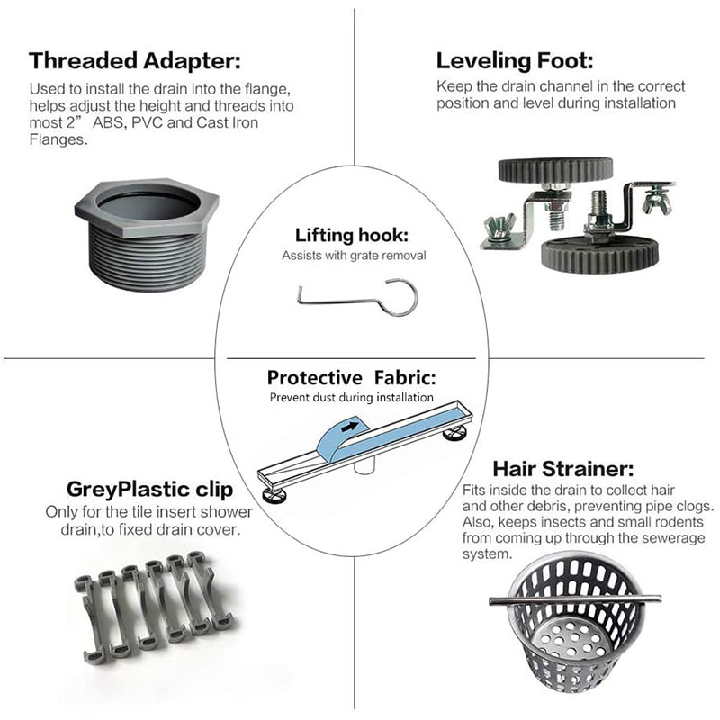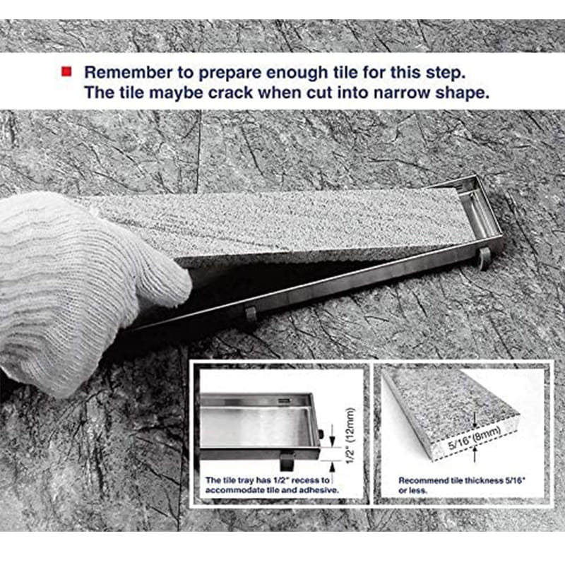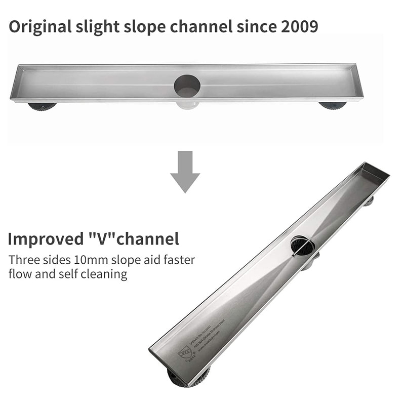 Drain líneach cithfholcadh deartha faoi iamh, cuireann sé feidhmiúlacht agus cuma shainiúil le do chuid cithfholcadh siúil isteach nó urlár an tseomra fliuch.